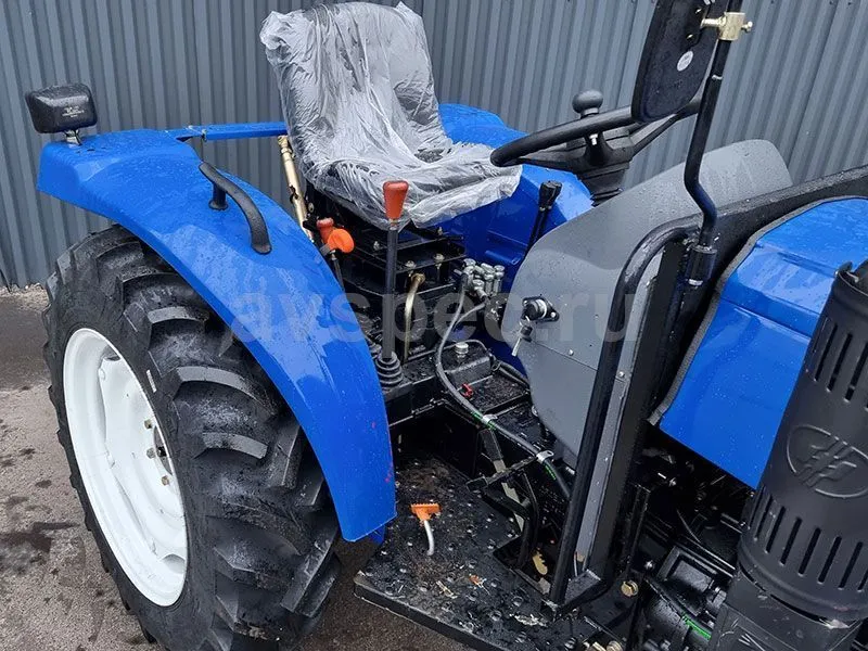 Трактор комплектуется передними утяжелителями, оснащен двумя парами гидровыходов и механическим сцепным устройством.